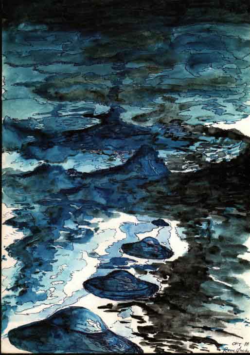 eet bilde av en tenkt evakuerings-scenario under jordens rensning. tegning av rune øverby.
